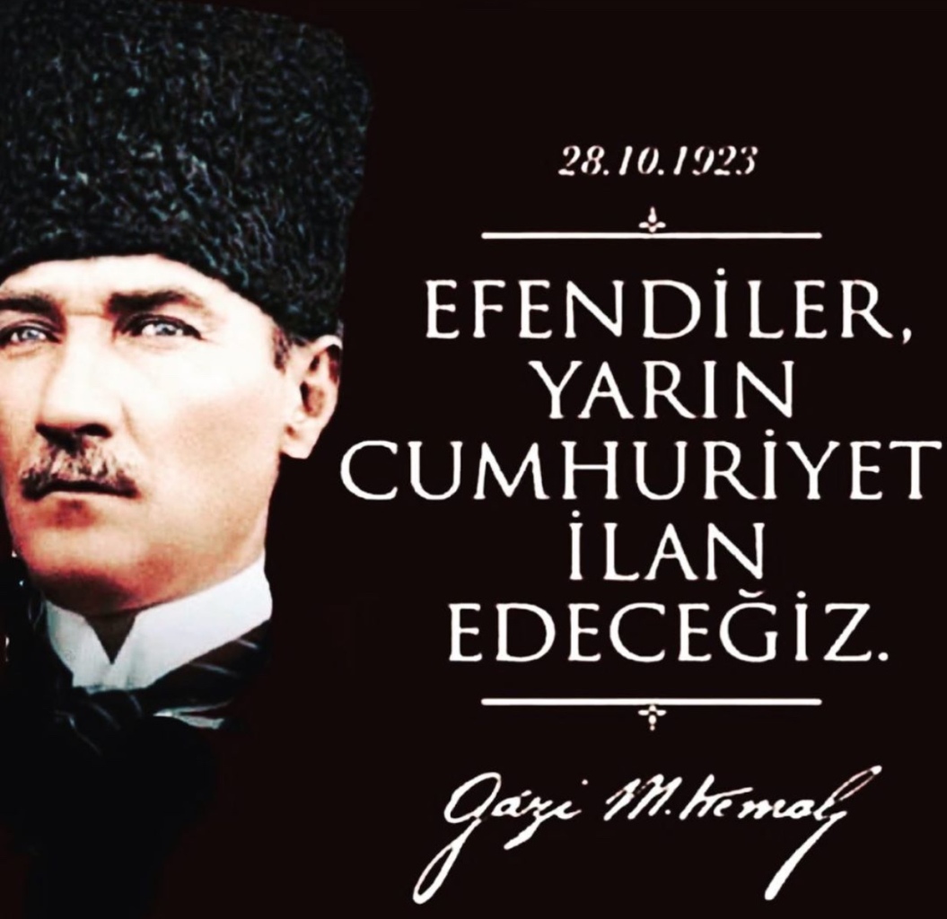 cumhuriyet yönetiminin ilanını 28 – 29 Ekim günleri Cumhuriyet Bayramı