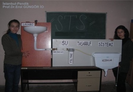 Projemizde suyu dahili bir enerji kaynağı kullanmadan borular arasındaki yükseklik farkından oluşan basınç kuvvetinden faydalanarak emme-çekme valfi ve filtreden geçirerek depoladık.Daha sonra depoladığımız suyu ihtiyacımıza göre çeşitli yerlerin temizliğinde kullanabiliriz.Bu sistemle 4 kişilik bir aile senelik 48776 litre su tasarrufu sağlarken bir kahvehane ise (Günlük lavabosu ortalama yüz kere kullanılan) 109500 litre tasarruf sağlar.